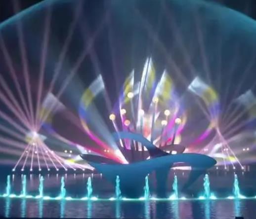 現代噴泉愛和光線和音樂的配合越來越完善